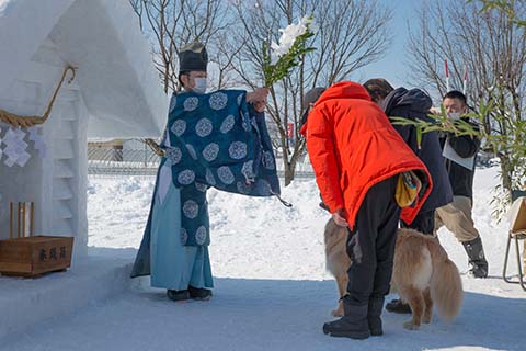 近年では、雪で作った「犬っこ神社」で愛犬を連れた皆様を対象に「愛犬祈願祭」を行うようになり、ワンちゃんがたくさん集まるイベントになりました。その他、市内各所でさまざまなイベントも開催され、家族や愛犬と一緒に楽しめるお祭りです。